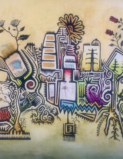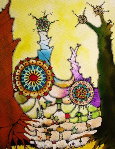 La palabra mandala, en sánscrito, significa círculo, en la obra del pintor Glen Montiel, las pequeñas formaciones concéntricas orbitan e interactuan dentro de un sistema de terminales arbóreas y nerviosas. Estos mandalas representan universos personales que forman un espacio mayor espiritual que es de todos. La revelación pulsa por la formación de corazones que den vida al entorno de una conciencia colectiva y amorosa.